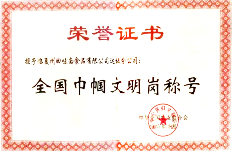 方大集团旗下临夏回味斋食品有限公司达板分公司荣获“全国巾帼文明岗”称号