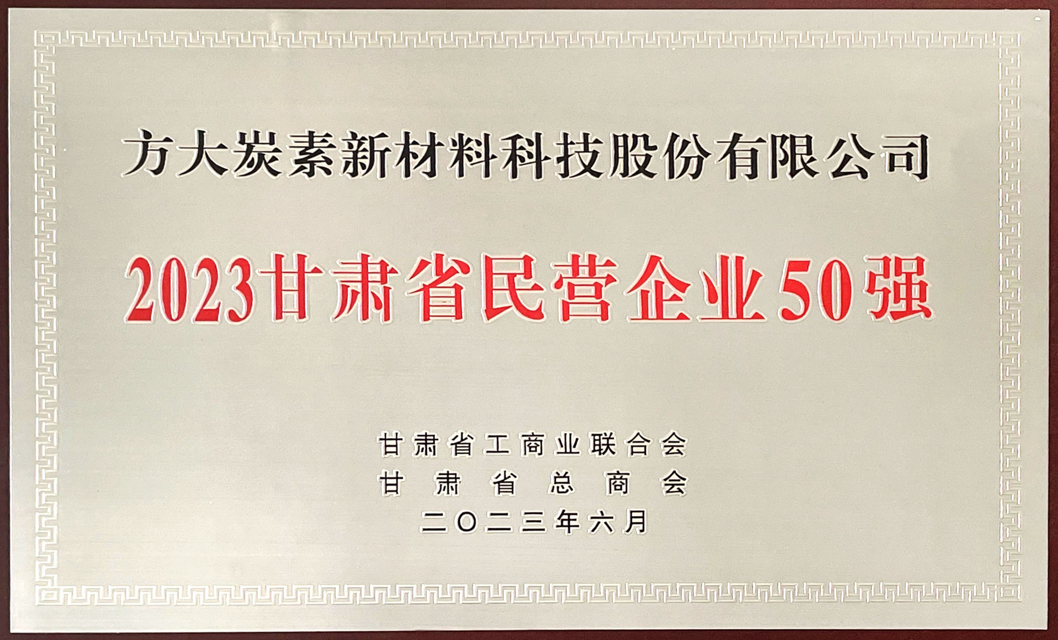 方大炭素入围2024甘肃省民营企业100强