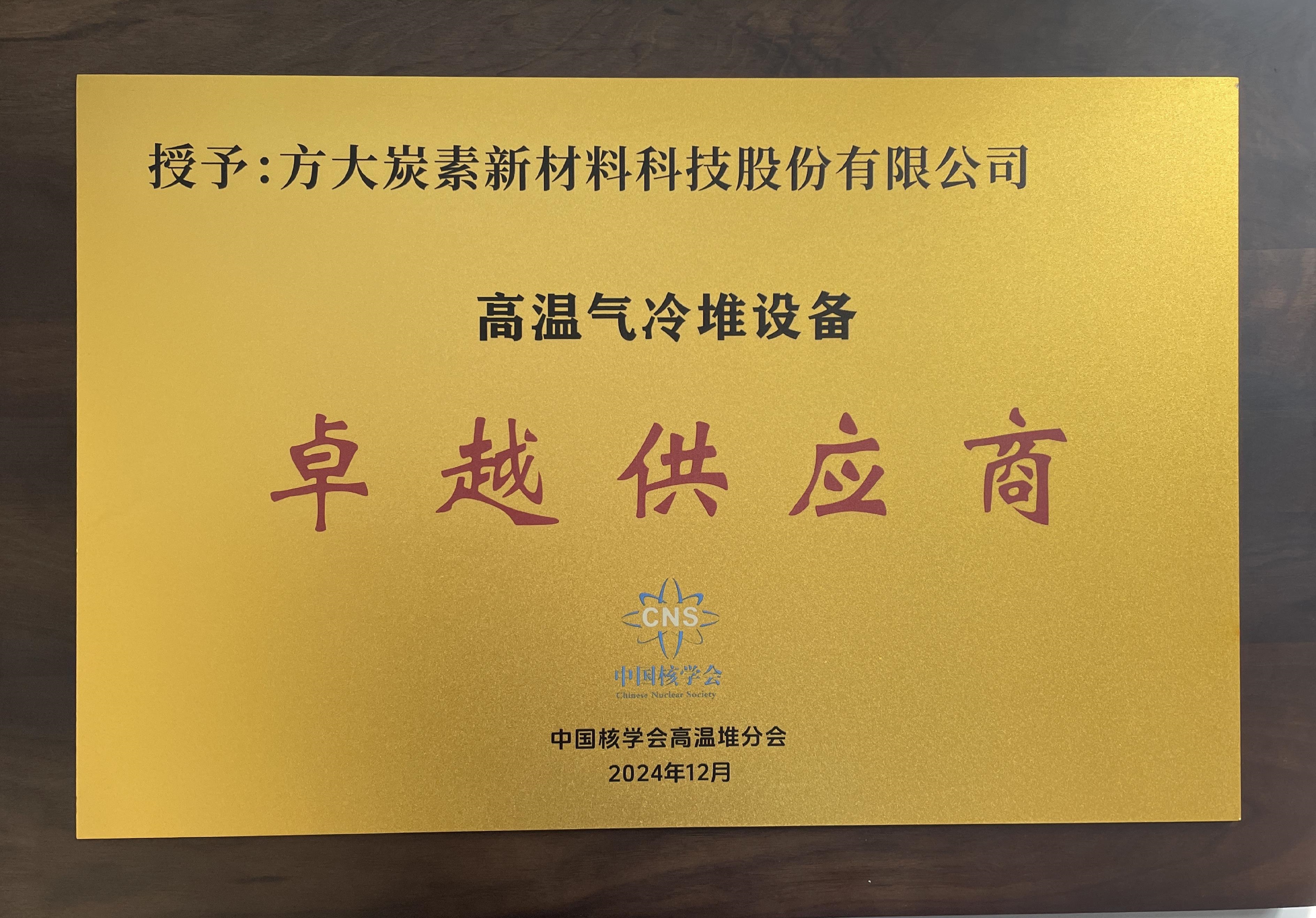 中国高温气冷堆设备领域“卓越供应商”荣誉称号